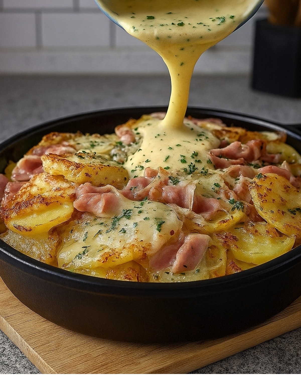 Meine Familie lässt nie etwas auf dem Teller übrig 😄🥔✨ Dieses einfache Kartoffelgericht mit Schinken ist so lecker, dass es im Nu verputzt ist! Perfekt, wenn man Lust auf etwas Selbstgemachtes, Warmes und richtig Wohlfühlendes hat 🥓💛🔥